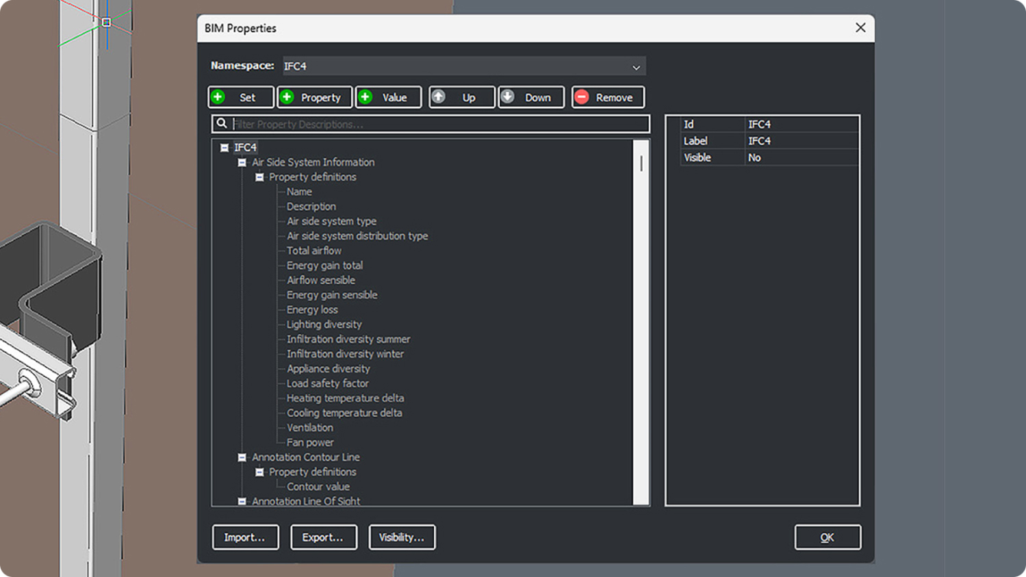 Importar IDS-XML para adicionar definições de propriedades de fontes externas: BIMQ, BIMids.eu, ILSconfigurator.nl.